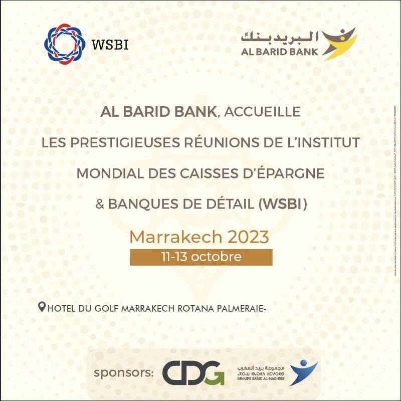 Al Barid Bank co-organise des réunions WSBI à Marrakech du 11 au 13 octobre 2023, sous le thème de l’inclusion financière. Cette 29ème Réunion du Groupe Régional Africain des membres WSBI rassemblera, en plus de 36 institutions financières membres du WSBI issues de 22 pays africains, des leaders financiers et des acteurs de la société civile en provenance du monde entier.