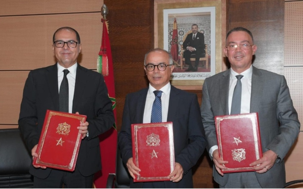 Chakib Benmoussa, ministre de l’Education Nationale, Fouzi Lekjaa, ministre délégué chargé du Budget et Khalid Safir, directeur général de la Caisse de Dépôt et de Gestion, ont procédé le vendredi 22 juillet 2022 à la signature d’une convention pour la gestion mandatée par la Caisse Nationale de Retraites et d’Assurances ( CNRA) du programme social TAYSSIR au profit des tuteurs des élèves.