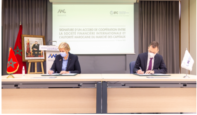 La Société financière internationale (IFC), membre du groupe de la Banque mondiale dédié au secteur privé, et l’Autorité Marocaine du Marché des Capitaux (AMMC) viennent de  signer un accord de coopération. Il a pour objectif d’améliorer les pratiques des entreprises en matière de reporting environnemental, social et de gouvernance (ESG) et ainsi promouvoir la finance durable sur le marché des capitaux marocain.