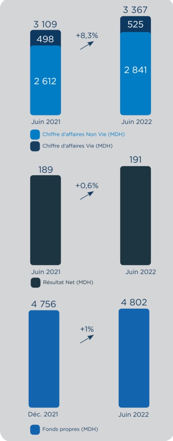 Le résultat net a atteint 191 millions de DH sur le premier semestre 2022, contre 189 millions de DH fin juin 2021 (+0,6%), impacté principalement par la contreperformance des marchés financiers.