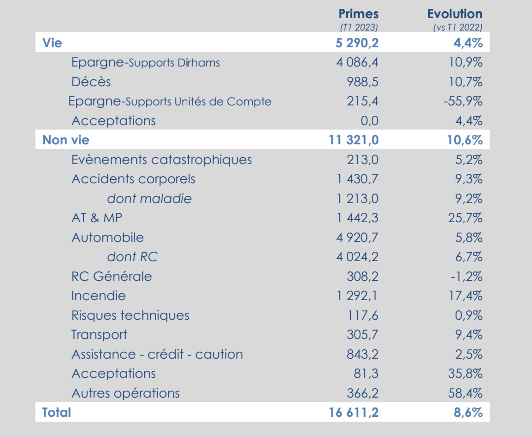L’ACAPS vient de publier les premières statistiques trimestrielles du secteur des assurances pour cette année.