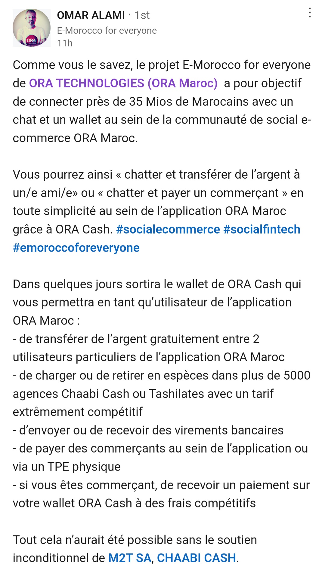 Cette solution permettra aux utilisateurs de l’application ORA Maroc :